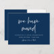 Este moderno design minimalista de casa nova, anúncio de mudança, cartões postais de mudança de endereço (com título do cartão, mudamos). É a maneira perfeita de anunciar aos seus amigos e familiares que você se mudou. (Fonte azul marinho)