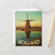 Esta cena clássica dos Países Baixos apresenta um moinho de vento em um lago com o reflexo do céu do crepúsculo.