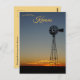 Este cartão mostra um moinho nas planícies do Kansas no pôr do sol. Aproveite seu novo moinho de vento em Sunset, no Kansas!
