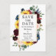 Guardar Floral Moderno Elegante Aquarela A Carteira Postal inclui rosas burguentos, rosas cor-de-rosa, flores azuis, flores vermelhas, girassóis, folhas de eucalipto e folhagem botânica verde numa moldura dourada.