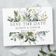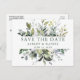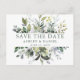 Anúncio de Noivado de Casamento com Molerce Botânico Moderno Elegante Aquarela Salva a data Cartão postal inclui folhas de eucalipto, folhagem botânica verde, folhas azuis empoeiradas e outras lindas culturas botânicas. Sage Green Text.