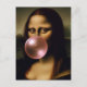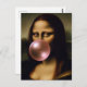 Uma representação engraçada de Mona Lisa soprando uma pastilha elástica rosa