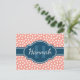 Na moda, rosa claro de tendência e padrão de pontos brancos no fundo, revestidos com um rótulo azul escuro com um nome personalizável e modelo de monograma.