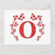 Cartão Postal Monograma - Letra O Vermelho Folhas