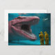 AI gerou arte de uma criatura submarina rosa pré-histórica atrás de uma parede de vidro com cientistas em fatos de risco amarelo estudando-a porque estavam fazendo um estudo do que aconteceu com o prédio apocalíptico abandonado da ciência