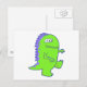 Cartão Postal monstro de dino verde de três olhos