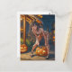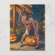 Cartão Postal Monstro do Halloween Jack-o-Lantern & Garota Vixen