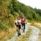 Dois homens pedalando nas colinas de Gales.