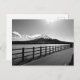 Cartão-postal preto e branco de neve capturou o Monte Fuji da margem do lago Yamanaka, um dos Cinco Lagos Fuji.