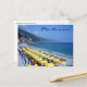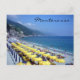 Cartão postal de Monterosso al Mare, Cinque Terre, Itália. Cartão postal totalmente personalizável. Monterosso é uma cidade e comunidade na província de La Spezia, parte da região de Liguria (Itália norte). É uma das cinco aldeias de Cinque Terre. A cidade está dividida em duas partes distintas: a velha cidade e a nova cidade. As duas áreas são divididas por um túnel de solteiro que atende aos pedestres e aos poucos carros da cidade. A praia de Monterosso percorre a maior parte da linha costeira e é bem utilizada por turistas e locais. A praia é a única praia de areia extensa no Cinque Terre. Monterosso é uma pequena cidade que, nos meses de Verão, é invadida por turistas.