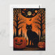 Um gato preto elegante sentado debaixo de uma lua de cheio brilhante, lançando uma silhueta enigmática contra o vibrante céu laranja. Árvores abafadas e abóboras espalhadas por baixo adicionam um toque de choradeira à cena. Sabiam que no antigo Egito os gatos eram reverenciados como animais sagrados e eram frequentemente associados à deusa Bastet, que representava proteção, prazer e boa saúde? Este trabalho de arte capta a mística da noite de Halloween e a ligação permanente do felino ao sobrenatural.