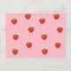 Cartão postal Morangos Rosa. Cartão postal personalizável tem morangos vermelhos fofos em um fundo rosa claro.