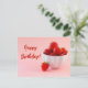 Envie desejos de aniversário doces com este cartão postal alegre com uma foto vibrante de Destei de morangos vermelhos maduros em uma tigela branca contra um fundo cor-de-rosa pincelado. O lado esquerdo inclui espaço para uma mensagem personalizada com texto de exemplo editável que diz "Parabéns!" Perfeito por adicionar um nome, data ou sua própria nota. Uma maneira brilhante e encantadora de celebrar alguém especial, seja enviado pelo correio ou preso a um presente.