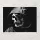 Preto e branco, foto estranha representando a morte. Apresenta uma figura esquelética (crânio) vestida num manto preto com capuz. Foto de George Hodan.