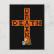 Uma cruz tem a palavra "cérebro" na vertical e a palavra "morte" na barra transversal, ambas compartilhando a letra "e". Na base há uma lápide, árvore morta e lua. Presente para Grande Ateu e camiseta.