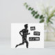 Uma imagem vetorial preta criada usando o espaço negativo como contornos e sombras. Ele forma um corredor macho, ajustado e muscular em shorts. No texto lê-se "Um passo de cada vez", que é uma abordagem não só para correr, mas também para a vida, quando as coisas são esmagadoras, a melhor abordagem é dar um passo de cada vez. Perfeito para quem ama malhações, treinos, corridas, corridas e maratonas.