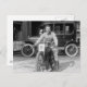 Uma bela e velha fotografia de Harley Davidson, moto de corrida com carro antigo em segundo plano.