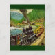 Ilustração vintage de um motor a vapor em trilhos de trem perto das montanhas americanas ocidentais