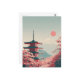 This artwork showcases a tranquil Japanese pagoda set within a peaceful forest, illustrated in a vintage-inspired style. The scene blends traditional architecture with natural beauty, creating a calm and nostalgic atmosphere. Ideal for Japan lovers, vintage art fans, and anyone drawn to serene Asian landscapes.