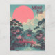 This artwork showcases a tranquil Japanese pagoda set within a peaceful forest, illustrated in a vintage-inspired style. The scene blends traditional architecture with natural beauty, creating a calm and nostalgic atmosphere. Ideal for Japan lovers, vintage art fans, and anyone drawn to serene Asian landscapes.