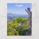 Parte superior do AON do Monte Solara de Capri, há uma estátua e um jardim que negligenciam uma vista bonita da península de Sorrento na distância.