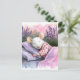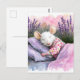 Um camundongo branco giro em PJs florais cor-de-rosa dorme numa cama com algumas plantas lavandas fantasia arte