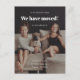 Este simples cartão-postal de anúncio móvel apresenta um design moderno com ousado tipo retrô. Esta mudança minimalista no cartão postal do anúncio de endereço apresenta uma foto e uma notícia do seu grande movimento. A parte traseira deste novo cartão postal de anúncio de endereço básico apresenta uma mensagem editável personalizada que permite ao pessoas saber que o seu novo quarto de convidado está à sua espera e inclui o seu endereço de devolução.
