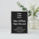 Cartão Postal Mudança comercial do endereço preto e prata frente