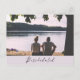 Estas fotos personalizadas Alterar a Data ou Adiar os cartões de lançamento são uma forma exclusiva de notificar seus convidados de sua alteração. O design moderno apresenta Atrasar Nossa Data na tipografia de script. Você pode ficar com a foto ou trocá-la por sua conta. A parte de trás tem uma nota para sua família e amigos que pode ser personalizada por você. Clique em "personalizar este modelo" para mudar todo o texto para o seu. Se precisar de ajuda com a personalização ou solicitações especiais, envie um e-mail para o site @gmail.com. Obrigados para parar em www.zazzle.com/Personal_Creations. ©Karen Hall para Personal_Creations no Zazzle.
