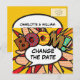 Personalize com seus nomes e detalhes para anunciar a mudança de data do seu evento especial. Tema de arte pop de quadrinhos moderno, design retrô divertido e moderno, perfeito para casamentos, chá de noiva, chá de bebê, batizados, festas de noivado, celebrações de aniversário de casamento, formaturas, festa de aniversário e outros eventos especiais ao longo do ano! Um design legal, moderno e divertido que dá um zap pow no seu dia. Criado por Thisisnotme©