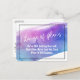 Essa placa distinta e ousada apresenta um pincelada colorido sobreposto com uma borda preta fina. Os tons de aquarela de rosa, roxo, azul e lacre aparecem dentro da área de tinta em negrito. Dentro, usei uma letra casual moderna para criar um gráfico que diz "Mudança de Planos". Abaixo, há uma mensagem alegre que você pode editar, que declara sua notícia: "Ainda estamos nos casando! Neste momento, não temos certeza de quando isso acontecerá." O verso inclui espaços reservados para modelo para seus detalhes. Use estes campos para adicionar suas informações pessoais e alterar meu rascunho para atender às suas necessidades e situação.