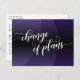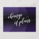 O fundo foi coberto por um trio de curvas roxas com uma sutil camada de ombro preto. Usando uma fonte bonito com espirais e ondas, criei um gráfico que dizia "mudança de planos". O verso inclui marcadores de posição modelo para seus detalhes com sotaques correspondentes com a fonte de caligrafia. Use estes campos de modelo para adicionar seus detalhes pessoais e alterar meu rascunho para adequá-los às suas necessidades e situação. Outras peças estão disponíveis no set e eu tenho o prazer de criar variações adicionais a pedido. 99 //