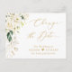 Cartão Postal Mudar a Data Gold Script Verde e Floral Branco