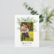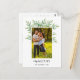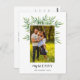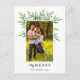 Galhos de aquarelas legantes com folhas verdes atrás de uma foto de família neste simples cartão de feriado.