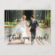 Cartão postal de agradecimento por foto de casamento com letra pincel moderna