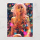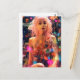 Cartão Postal Mulher Cabelo Rosa Pastel