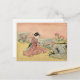 Mulher a escolher crisântemos ao longo de um riacho. impressão japonês Vintage de Suzuki Harunobu.