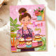 Cartão Postal Mulher Colorida com Bolo Ilustrado de Aniversário
