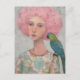 Cartão Postal Mulher com Cabelo Rosa e Pássaro