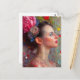 Cartão Postal Mulher com Flores e Corações