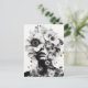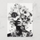 Mergulhe no mundo surreal da arte da IA com nossa captivadora fotografia em preto e branco. O rosto de uma mulher adornada com flores evoca mistério e beleza. Perfeito para entusiastas da arte ou para enviar um toque de intriga em qualquer ocasião.