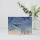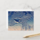 Cartão postal: Mulher de cabelo comprido - Impressão de Arte Original com uma rapariga de fundo floral de cor azul/prata.