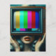 IA gerou arte de uma mulher cabeleira de prata com uma TV na cabeça