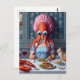 Um polvo de olho googado com uma boné rosa-chá comendo um janto com sua arte surreal de gato de estimação