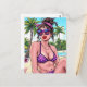 Cartão Postal Mulher em Bikini e Bandanna na praia