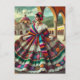 Esta imagem mostra uma mulher mexicana no traje folclórico tradicional, refletindo a herança cultural vibrante do México. Sua saia colorida e fluente é enfeitada com um elaborado bordado e padrões intrincados, simbolizando a arte e o orgulho regional. A blusa branca com delicado detalhamento de rendas adiciona um toque de elegância, enquanto o brilhante xale rezo, corado sobre os ombros, destaca a versatilidade e significado dos têxteis tradicionais. Seu cabelo, elegante com flores e fitas, reforça ainda mais sua conexão com as tradições festivas mexicanas. O conjunto é um testemunho da rica história e criatividade incorporadas na cultura mexicana.
