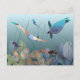 Cartão Postal Mulher nadando submarina com tartaruga