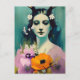 Cartão Postal Mulher Pagã Pintando Flores Laranja Rosa