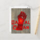 Um punho elevado com um círculo colorido do fogo que se espalha em anéis e as palavras "Mulheres Radicais" mostram o seu poder, independência e luta pela igualdade e força para todas as pessoas.