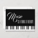 Um design é para amantes da música jovens e velhos. Este cartão-postal apresenta um design simples e elegante com um teclado piano. Acima do teclado, o texto diz "Música é uma coisa de beleza". A parte traseira do cartão-postal tem uma versão menor do teclado piano ao lado do endereço de retorno. Há também linhas definidas no verso para adicionar um endereço e você pode personalizar o plano de fundo.